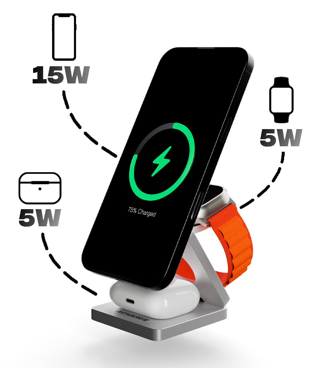 - Watt output: iPhone: 15W, AirPods: 5W, Apple Watch: 5W